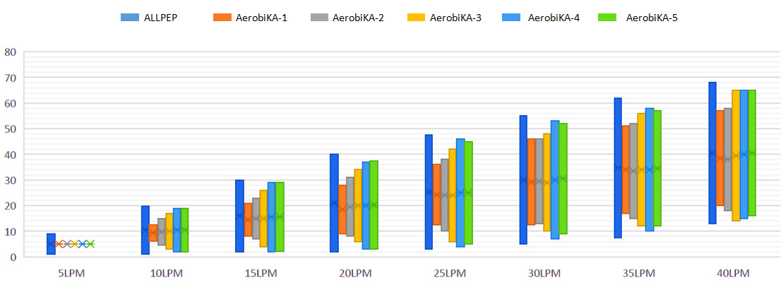 实验证明:AllPEP无段调整比可调式的AerobiKA(5段),在不同的流量振荡幅度其表现更佳。 测试设备: ASL 5000
